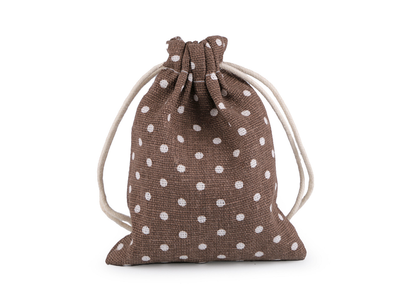 Dárkový pytlík 10x13 cm lněný s puntíky - 10 ks - 3 hnědá