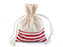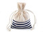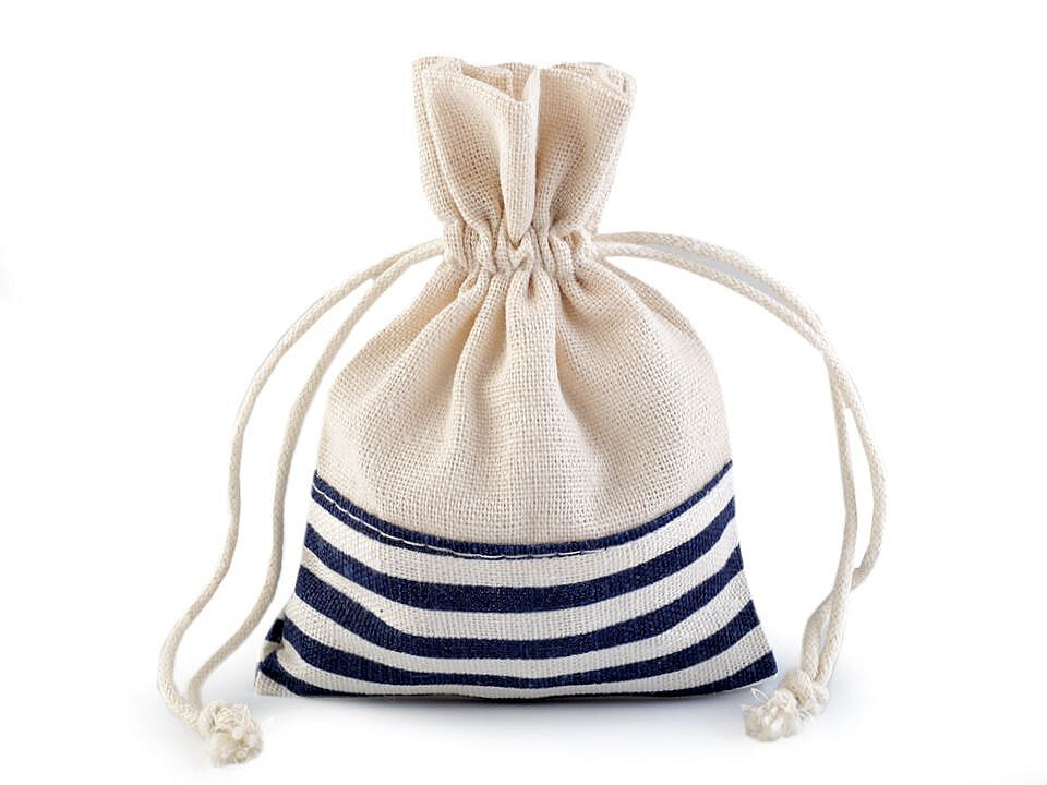 Lněný pytlík v námořnickém stylu zdobí vodorovné proužky. Uzavírá se pomocí dvou stahovacích šňůrek. Pytlík využijete k balení menších dárků. Můžete do něj také vložit sušené bylinky, které budou krásně vonět.