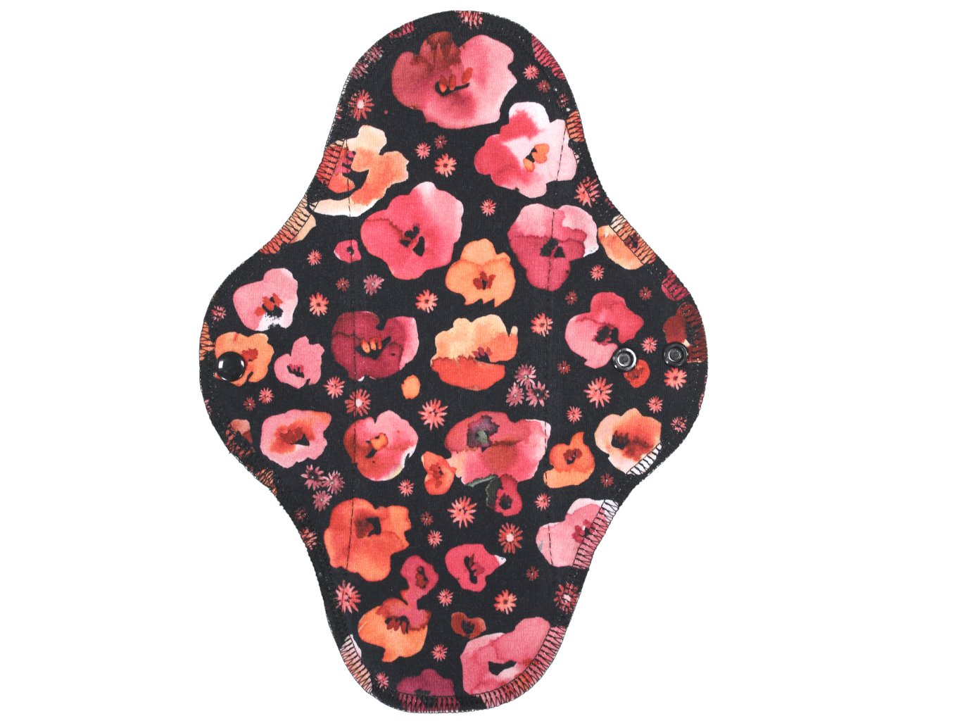 BIO Noční vložka (Bambusové froté s PUL) - Makové květy (biobavlněný úplet s GOTS)