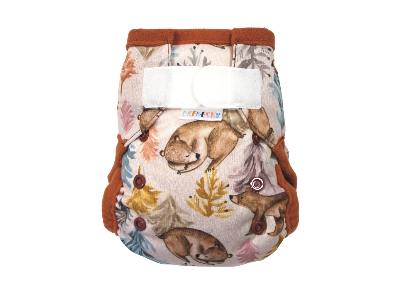Nebo lidově s "dvojitými gumičkami" má rozšířnou část mezi nožičkami a těsněji je obepíná. Skvěle se hodí u miminek s řidší stolicí anebo hubenými nožkami