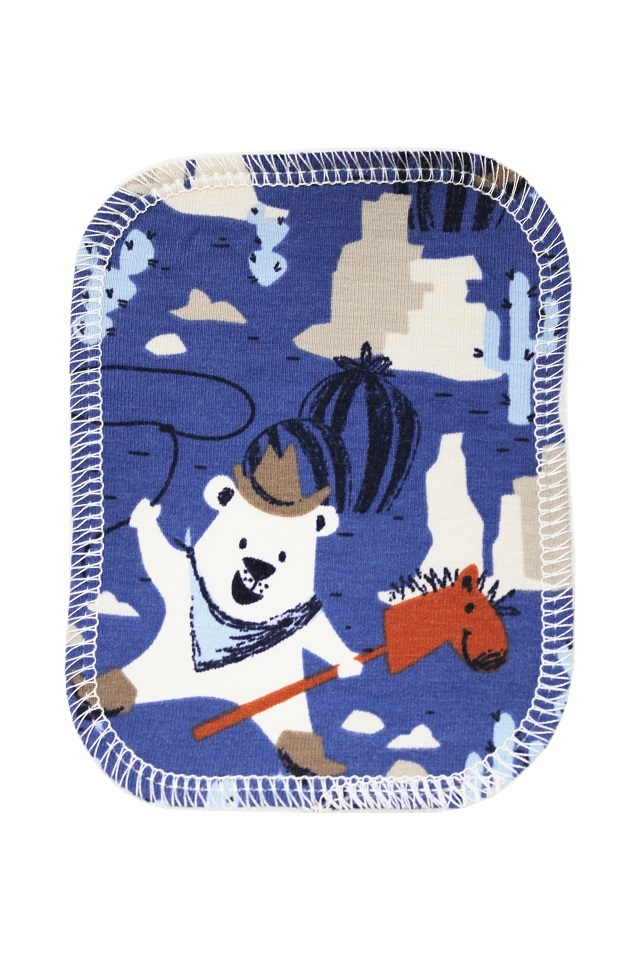BIO Látkový ubrousek S (9x12cm) - Medvěd kovboj a biobavlněné froté (GOTS)