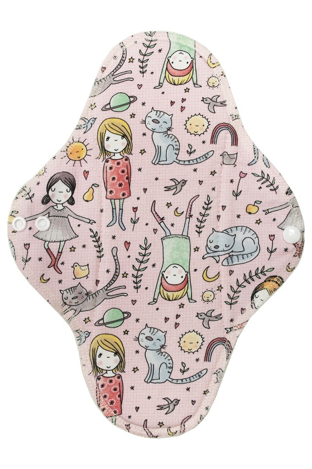 BIO Noční vložka (Bavlněné froté s PUL) - Kočičí přátelé (biobavlněný úplet s GOTS)