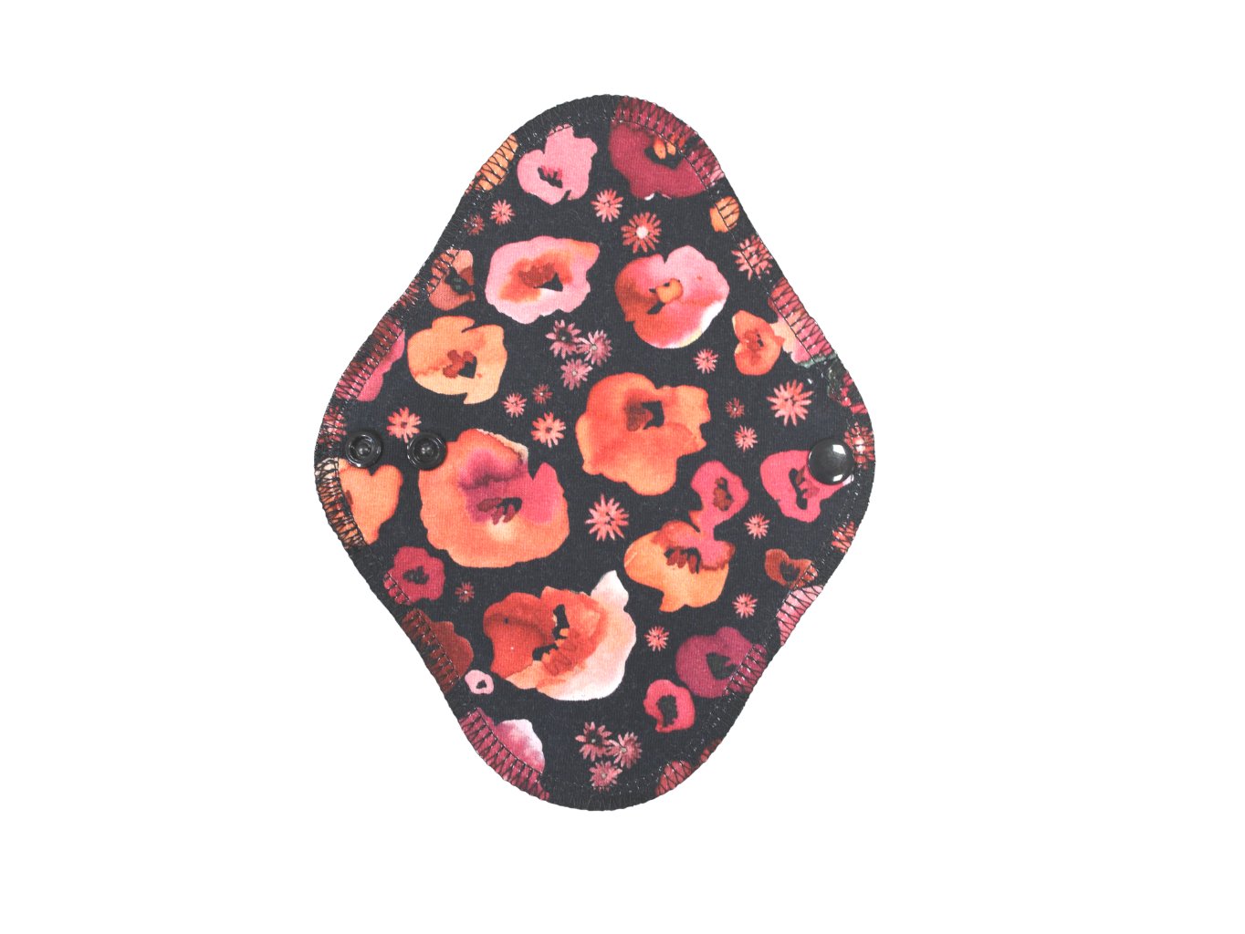 BIO Intimní vložka s GOTS (Biobavlněný úplet) - Makové květy, černé obšití