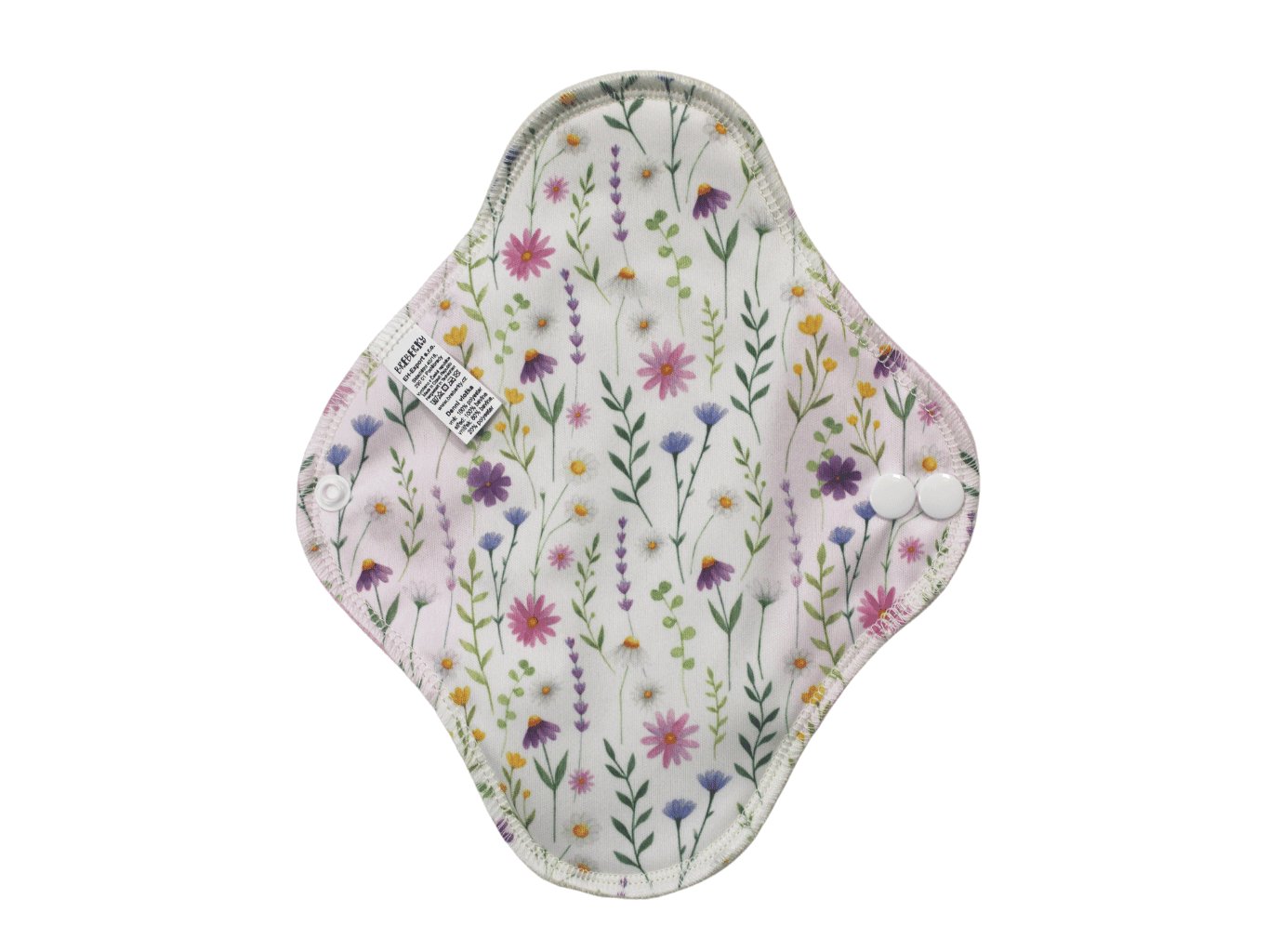 Denní vložka (PUL) - Fialové kopretiny, sv. růžový velur (kojenecký plyš)