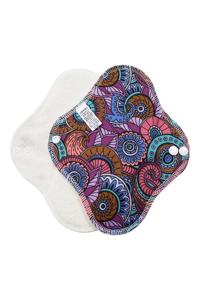 BIO Denní vložka (PUL) - Květinové mandaly fialové & přírodní bambusovo-biobavlněné froté
