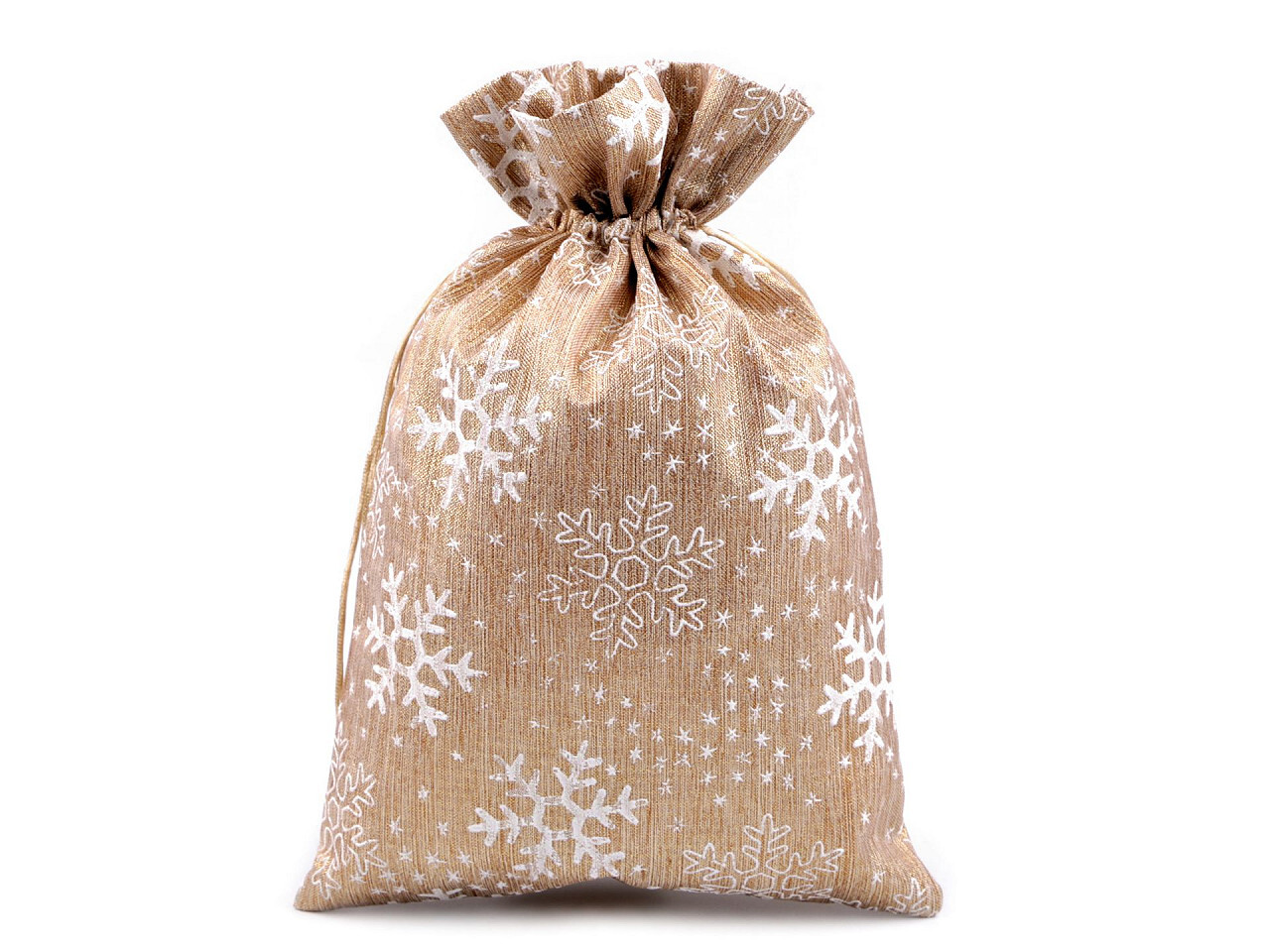 Vánoční dárkový pytlík vločky brokátový potisk 20x30 cm - 1 ks - zlatá