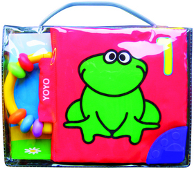 Velmi povedená látková kniha s chrastítkem, která je ještě lepší než klasické látkové knížky. Hlavní hrdinkou je zde žabka - obrázky jsou kontrastní, jednoduché a hlavně pěkně barevné, takže zaujmou nejmenší miminka. Stránky knížečky jsou příjemně měkké a navíc šustí - to je další výhoda této knížky. Děťátko díky ní rozvíjí sluch díky šustění a jak osahává stránky a mačká je, rozvíjí i hmat. Velkým bonusem je chrastítko, které slouží jak ke hře, tak k pohodlnému uchopení.