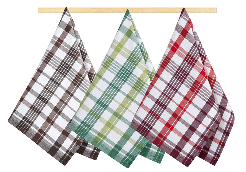 Kuchyňské utěrky - zelené, hnědé, červené káro - 50x70 cm