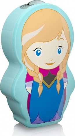 Dětská LED baterka ve tvaru veselé princezny Anny z oblíbené Disney pohádky Ledové království udělá radost každé malé Frozen fanynce. Snadno padne do malé dětské ručky a stane se skvělým pomocníkem v podobě příjemného nočního světla. Vypínač pro jednoduché vypnutí/ zapnutí je umístěn na těle baterky. Má vysoce kvalitní úsporné teplé bílé LED světlo. Díky použité integrované LED technologii zůstává baterka chladná i po dlouhém svícení a je tak pro děti zcela bezpečná. Zdrojem energie jsou 2xAAA 1.5V baterie, které nejsou součástí balení. Baterka není voděodolná, má stupeň krytí s hodnotou IP20. Krytí IP20 Interiérová svítidla jsou vyrobena pro použití v domácnosti, kanceláři nebo v jiných vnitřních prostorách. Označení krytí stupněm IP vyjadřuje dva údaje. Prvním je stupeň ochrany proti prachu a druhým proti vodě. Svítidla s krytím IP20 jsou chráněna proti vniknutí pevných cizích těles o průměru 12,5 mm a větších a před dotykem prstem. Proti vodě nejsou chráněna. Toto krytí je nejčastějším pro zařízení určených pro interiéry.