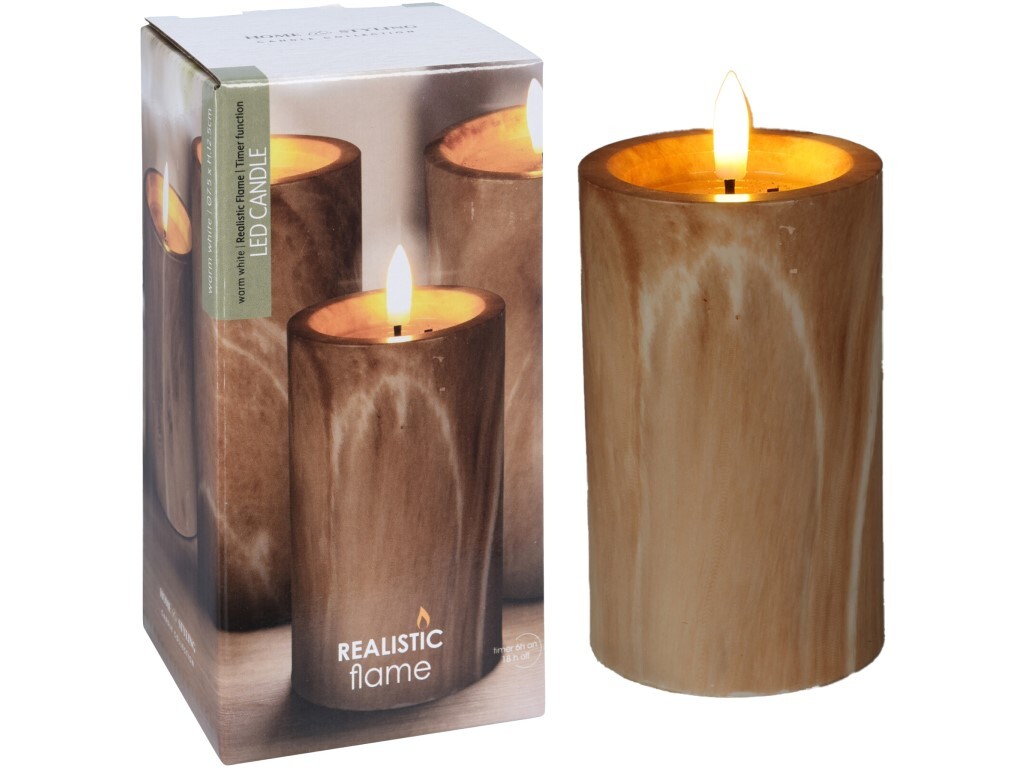 LED svíčka 75x75x125mm plápolající povrchová úprava s časovačem, hnědá