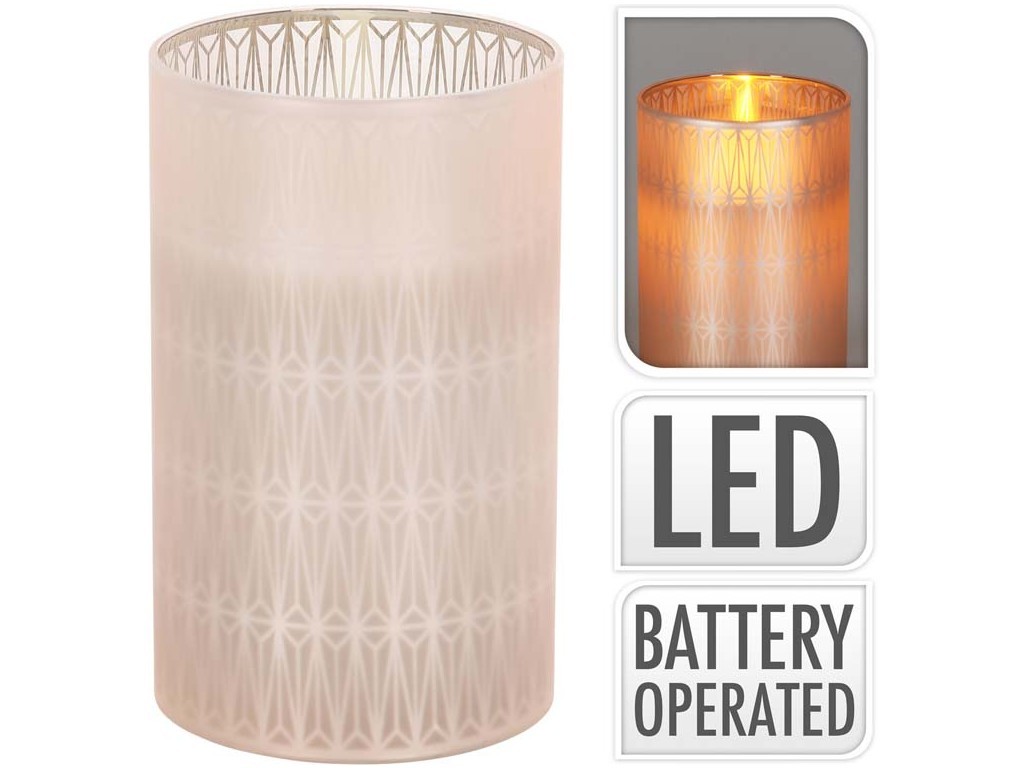 LED svíčka ve skle 75x125mm s reálným plamenem geometrický tvar, bílá