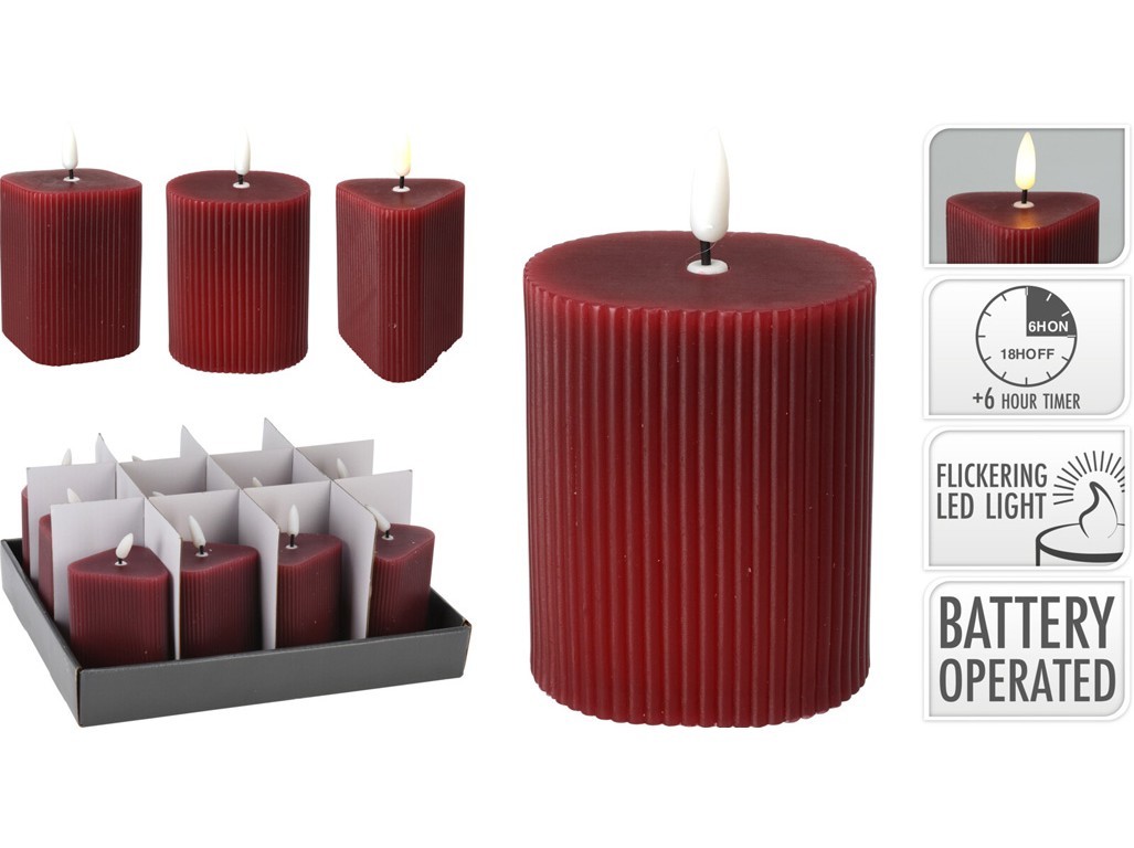 LED svíčka 60x115/65x115/70x115mm mix s časovačem, červená