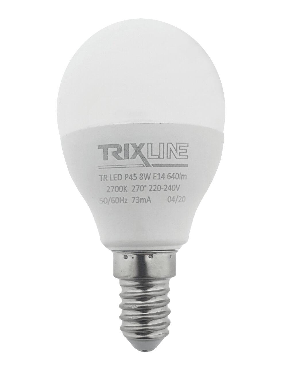 LED žárovka Trixline 8W E14 P45 teplá bílá
