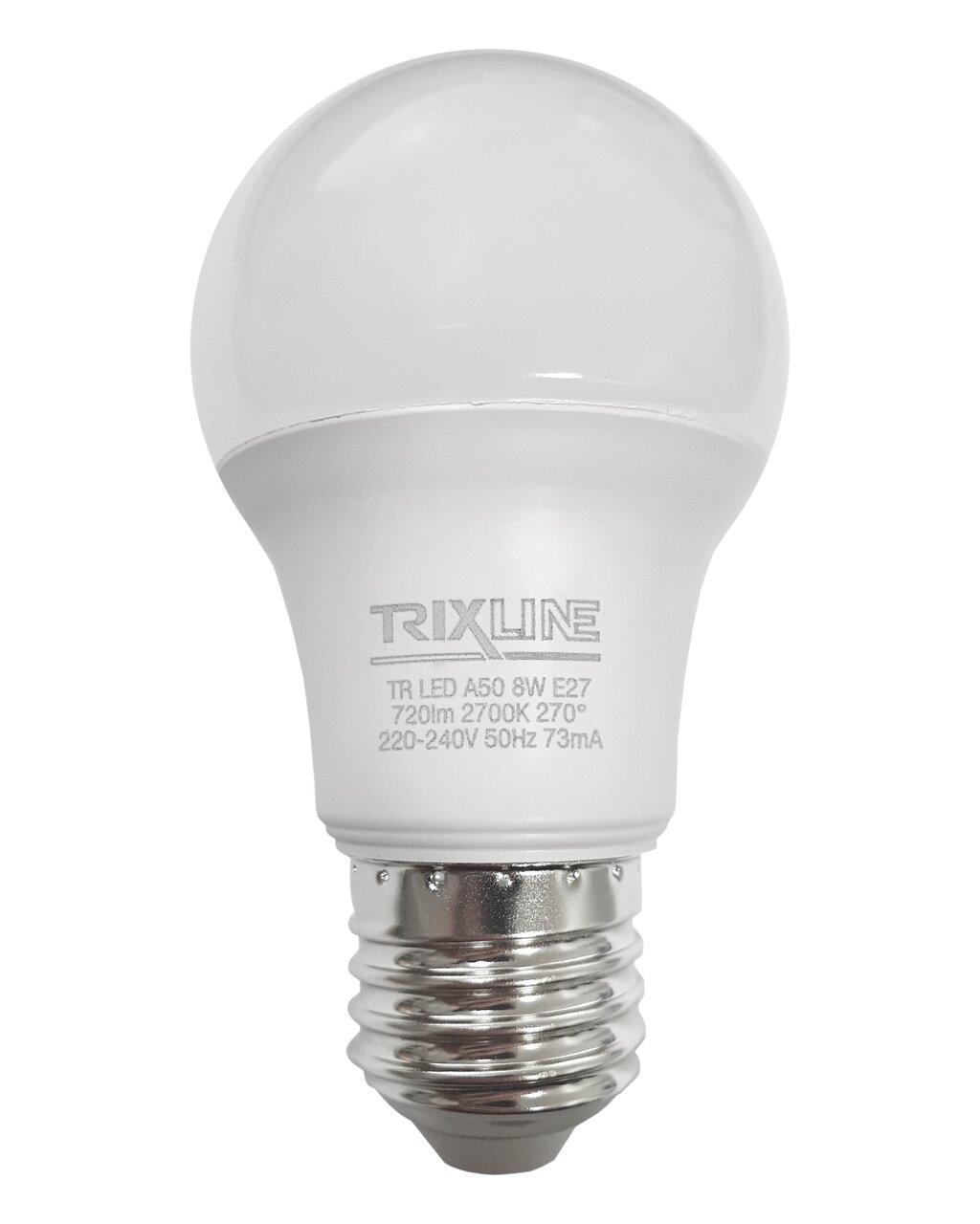 LED úsporná žárovka TRIXLINE s paticí E27, šetrná k životnému prostředí, neobsahuje žádnou rtuť ani olovo, navíc se dobře osvědčuje i při extrémně nízkých i vysokých teplotách, kdy s vláknovými žárovkami bývají problémy. Její životnost dosahuje až 30 000 hodin. Díky svému výkonu 8W výborně poslouží jako náhrada za klasickou 70W žárovku. LED žárovka se po zapnutí okamžitě rozsvítí bez jakékoliv prodlevy a vyzařuje teplé bílé světlo 2700K.
