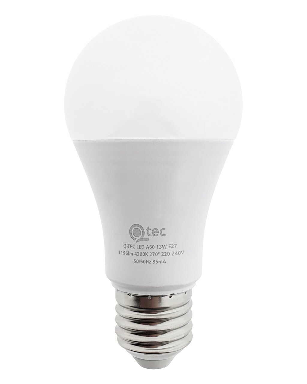 LED ŽÁROVKA Q tec je úsporná LED žárovka s paticí E27, šetrná k životnímu prostředí, neobsahuje totiž žádnou rtuť ani olovo, navíc se dobře osvědčuje i při extrémně nízkých i vysokých teplotách, kdy s vláknovými žárovkami bývají problémy. Její životnost dosahuje až 30 000 hodin. LED žárovka se po zapnutí okamžitě rozsvítí bez jakékoliv prodlevy a vyzařuje příjemné neutrální bílé světlo 4200K.