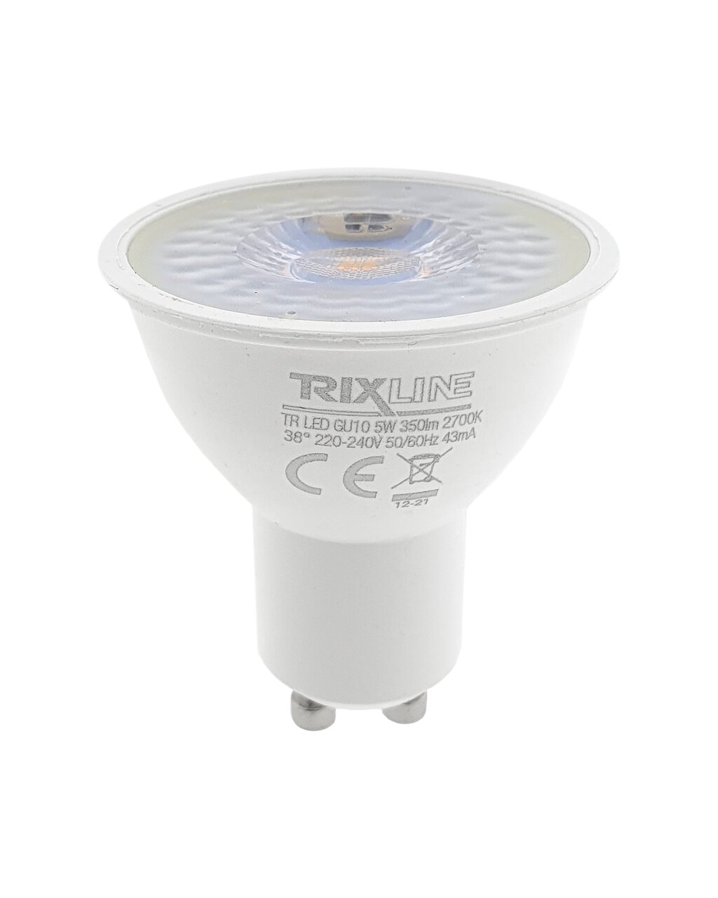 Úsporná LED žárovka Trixline s paticí GU10, šetrná k životnímu prostředí, neobsahuje žádnou rtuť ani olovo, navíc se dobře osvědčuje i při extrémně nízkých i vysokých teplotách, kdy s vláknovými žárovkami bývají problémy. Její životnost dosahuje až 30 000 hodin. Díky svému výkonu 5W výborně poslouží jako náhrada za klasickou 42W žárovku. LED žárovka se po zapnutí okamžitě rozsvítí bez jakékoliv prodlevy a vyzařuje příjemné teplé bílé světlo 2700K.