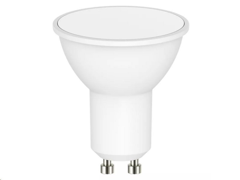 LED žárovka GU10 s příkonem 5.7 W s teplou bílou barvou světla. Nahrazuje 40 W klasickou žárovku. Světelný tok 465 lm, teplota chromatičnosti 3000 K, úhel vyzařování 120°.