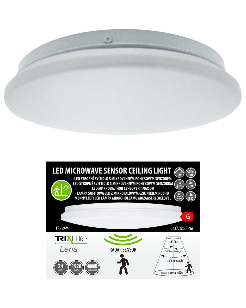 Trixline LED stropní svítidlo 24W LENA TR-24M s mikrovlnným pohybovým senzorem. Po zaznamenání pohybu svítí 30s.