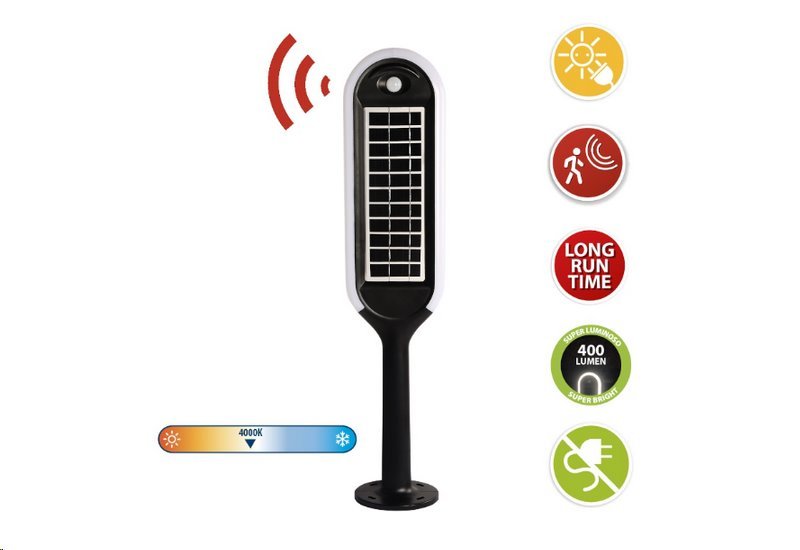 LED solární lampa SPK081 s pohybovým a světelným senzorem.