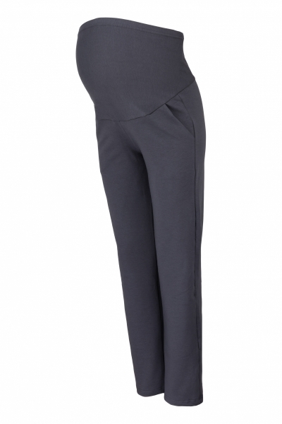 Be MaaMaa Těhotenské kalhoty s elastickým pásem a kapsami - grafit, vel. XL
