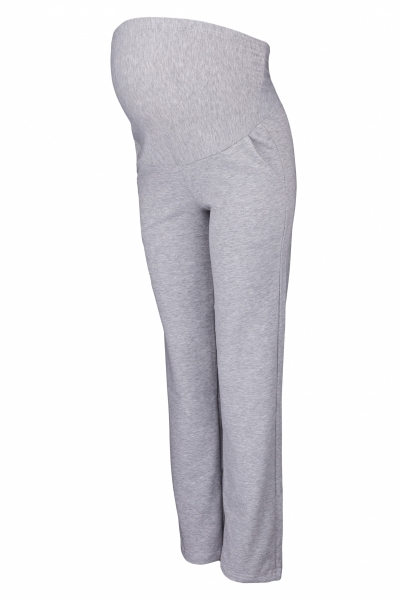 Be MaaMaa Těhotenské kalhoty s elastickým pásem a kapsami - šedý melírek, vel. XL; XL (42)