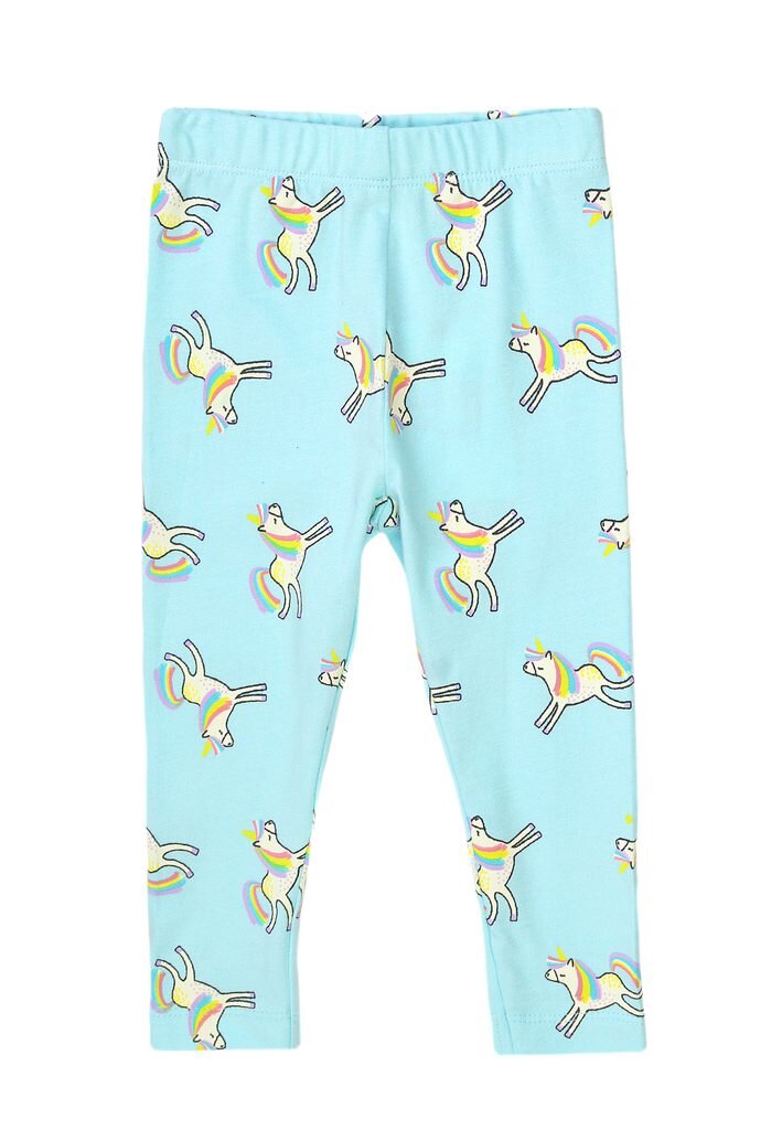 dívčí legíny modro-zelené s potiskem jednorožce.Materiál: 94% bavlna, 6% elastan číst celé