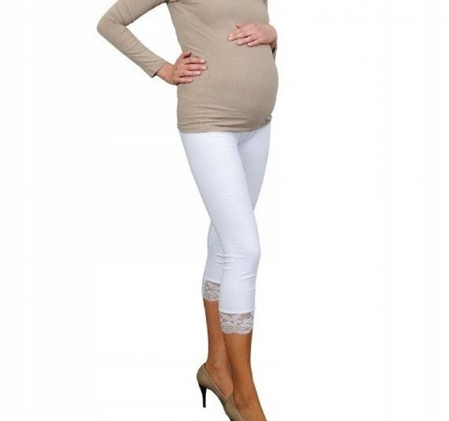 Be MaaMaa Těhotenské legíny 3/4 zakončené krajkou - bílá, vel. XL; XL (42)