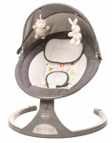 Pohodlná a prostorná elektrická houpačka pro děti do 9 kg, která stimuluje vývoj dítěte a umožňuje rodičům chvíli si odpočinout. Díky připevněné stříšce se bude skvěle hodit nejen v interiéru, ale i na zahradě nebo terase. Houpavý pohyb odpovídá přirozeným pohybům miminka v bříšku maminky, což napomáhá ke zklidnění.