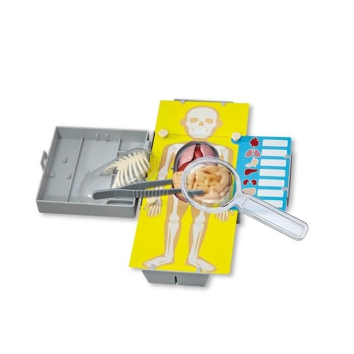 Staň se malým chirurgem! Studuj speciálně konstruovaný lidský trup, který je složený v praktickém kufříku. Přeměň jej na operační stůl a bav se zkoumáním lidských orgánů!