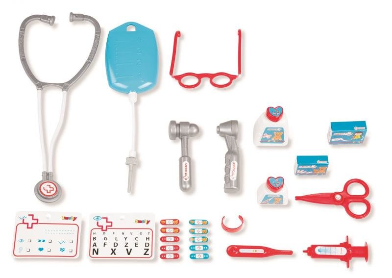 Vozík pro malé lékaře je vybaven přístroji pro zjištění zdravotního stavu pacienta. Obsahuje např. stříkačku, teploměr, stetoskop a další. Celkem 16 ks příslušenství. Rozměry: 31 x 55,5 x 31,2 cm. Hmotnost 1,70 kg. číst celé