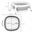 Skládací masážní vanička na nohy. Pevný a odolný materiál, promyšlený design. Výklopné, protiskluzové nožky, vypouštěcí zátka. Použitá konstrukce umožňuje rychlé skládání a rozkládání. Snadné skladování, nezabírá místo. Vhodné pro každodení použití, na aromatickou koupel nebo masáž.