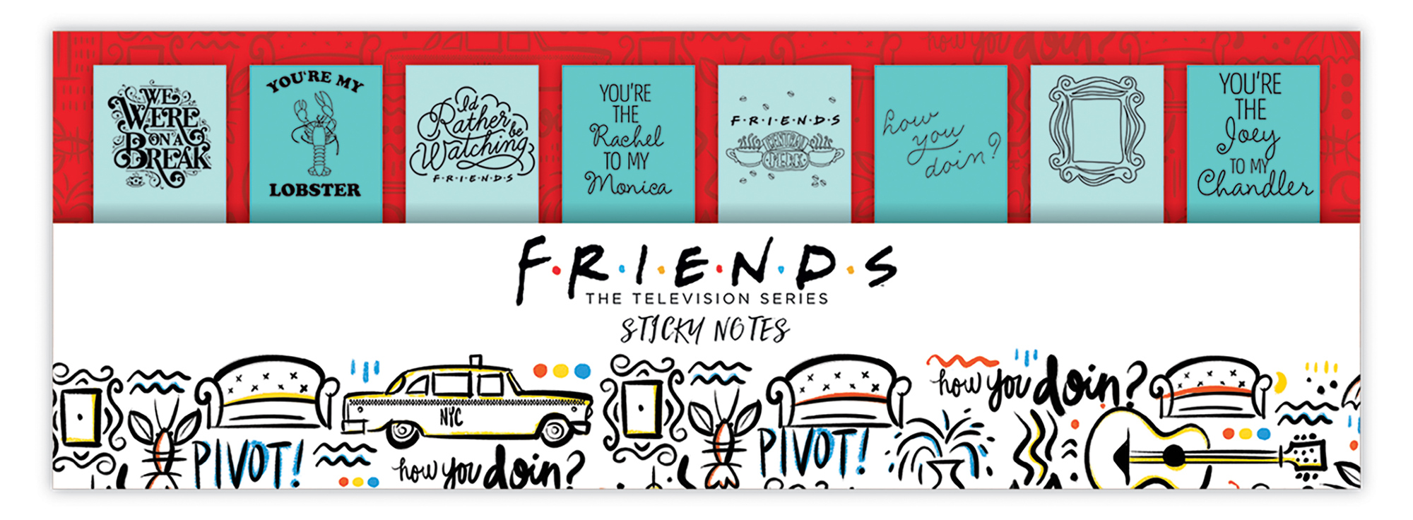 Oficiální set lepících štítků z katalogu produktů s licencí amerického sitcomu Friends.