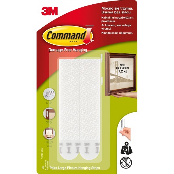 Zapomnij o dziurach w ścianach, pęknięciach w gipsie lub resztkach kleju na ścianie, zastąp gwoździe i śrubokręty commandem™ haki i rzepy command™ nie niszczą powierzchni oraz samych obrazów i ramek wystarczy jeden klik, a już wiesz, że rzepy command™ są poprawnie umocowane na ścianie usunięcie rzepów i haków command™ jest równie proste jak ich aplikacja, szczególnie kiedy chcesz dowolnie zmienić położenie obrazu lub go zdjąć maksymalne obciążenie: 7,2kg w opakowaniu 2 zestawy dużych pasków z rzepami kolor: biały