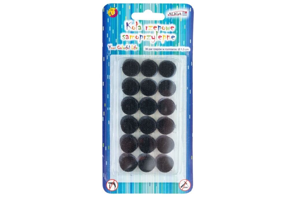 Suché zipy - kolečka o průměru 1,5 cm černé, samolepící. V balení 36 ks suchých zipů. číst celé