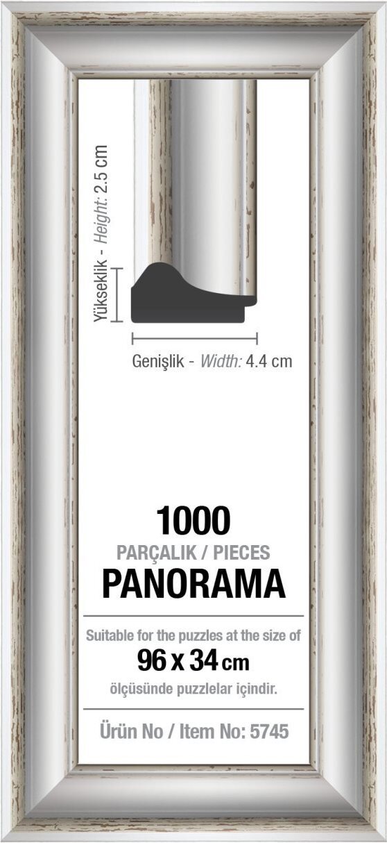Designový rám na puzzle bez výplně. Rám je určen pro panoramatické ART PUZZLE 1000 dílků o maximálním rozměru 96 x 34 cm. Lze jej použít i pro puzzle jiných značek (stejného rozměru). Balení obsahuje: rám na puzzle, kartonovou podložku a háček na zavěšení zarámovaného puzzle. Návod Nejprve puzzle slepte (lepidlo není součástí balení). Pro tento účel jsou nejvhodnější lepidla, která zatečou mezi dílky, nebo lepicí folie. Po zaschnutí lepidla slepené puzzle umístěte do rámečku, přiložte kartonovou zadní desku a zacvakněte. Opatrně přitlučte závěsný háček na dlouhou či krátkou stranu zadní části rámu a zavěste puzzle na zeď. Upozornění: Sada neobsahuje sklo ani jinou výplň, aby nebyl zkreslen výsledný efekt puzzle obrázku.