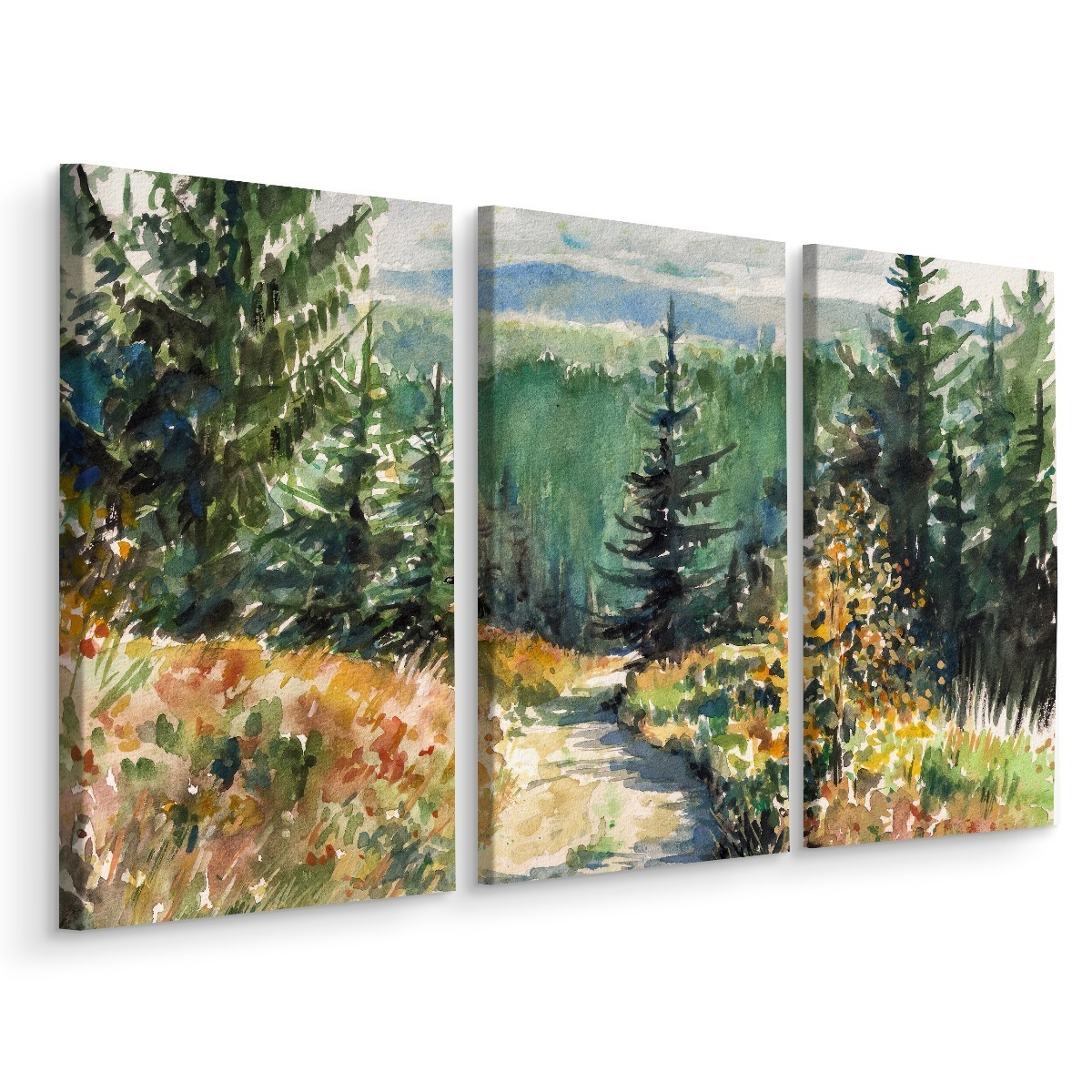 Vícedílné plátno Lesní Krajina Malovaná Vodovými Barvami