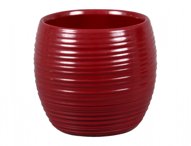 Keramický lesklý obal na květník zdoben proužky. Barva: bordó. Průměr: 15 cm. číst celé