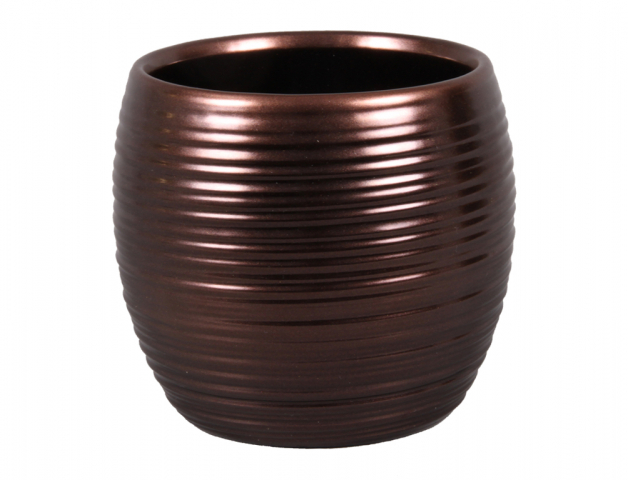 Keramický lesklý obal na květník zdoben proužky. Barva: měděná. Průměr: 13 cm. číst celé