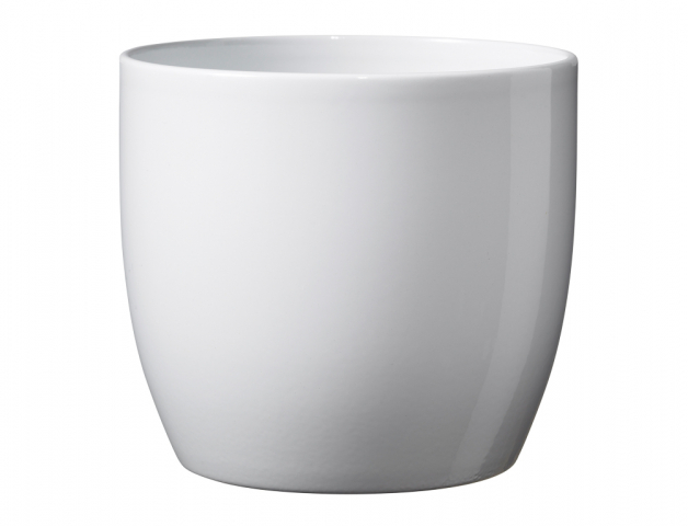 Keramický glazovaný lesklý bílý interiérový obal vhodný pro květníky s rostlinami ve tvaru válce, který se od spodu jemně rozevírá. Barva: bílá. Průměr: 14 cm. číst celé