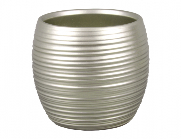 Keramický lesklý obal na květník zdoben proužky. Barva: chrom zlatá. Průměr: 15 cm. číst celé