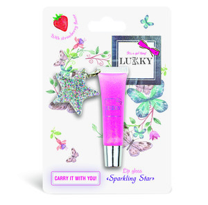 Třpytivý lesk na rty Lukky s přívěskem je ideální pro malé parádnice, které chtějí oslnit nejen vzhledem, ale i sladkou jahodovou příchutí. Díky jemnému lesku budou rty vypadat zdravě a rozzářeně a přívěsek dodá každému balení hravý a osobitý styl.