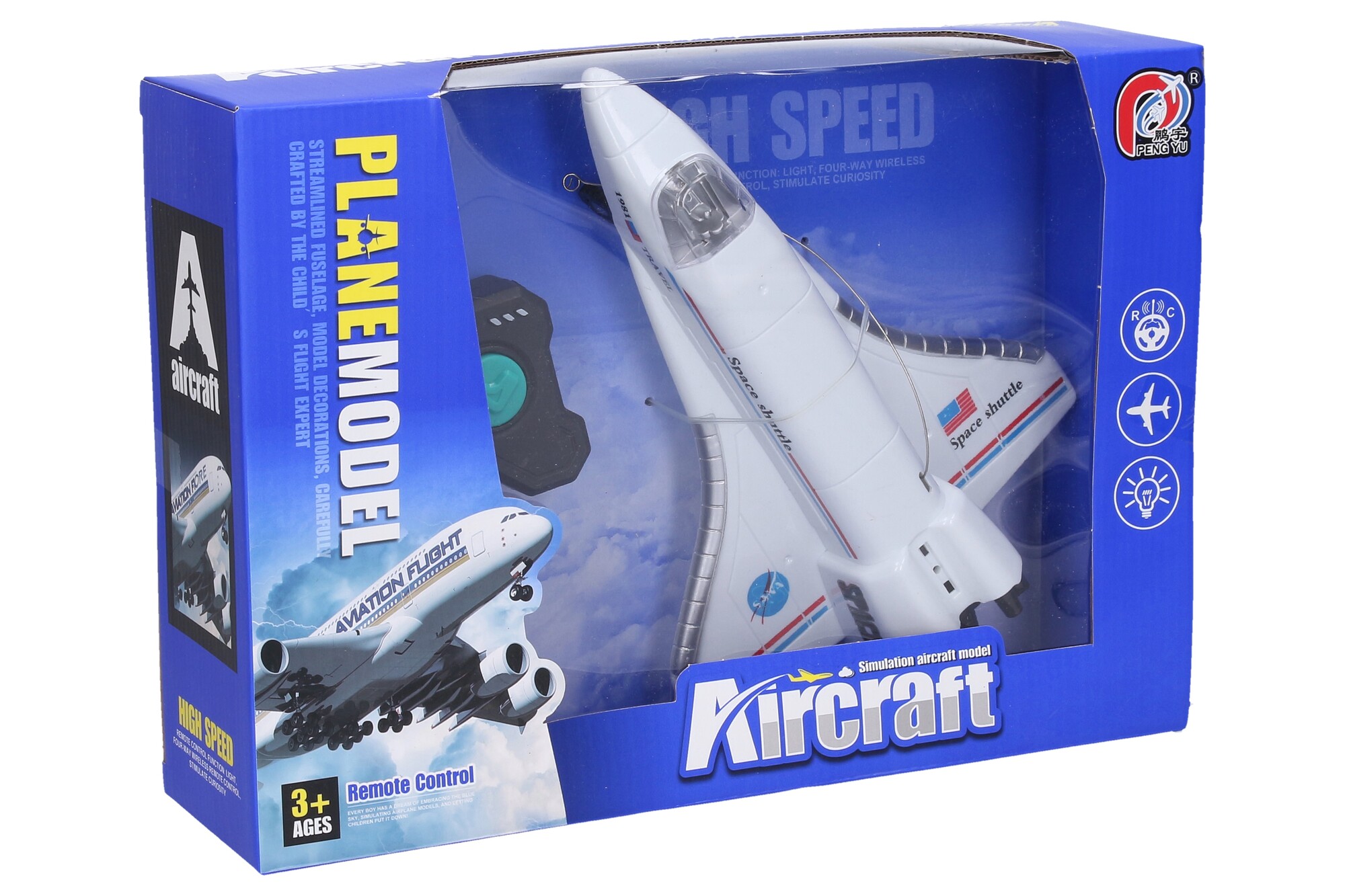 Raketoplán jezdící RC na dálkové ovládání. Rozměry 21x16 cm. Frekvence 27MHz. Světelné efekty. 2xAA baterie do raketoplánu, 2xAA do ovladače nejsou součástí. Přepínač ON/OFF na spodní straně raketoplánu. Ovladač - levé tlačítko jízda dopředu, pravé tlačítko - jízda dozadu. číst celé
