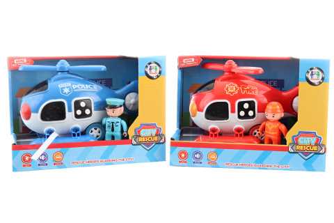 Helikoptéra na baterie. Materiál plast. Napájení na 3xAG13 baterie (jsou součástí balení). Helikoptéra vydává zvuky letu a houkání. Baleno v otevřené krabici. Rozměry balení cca 21x15x12 cm. 2 barvy - dodáváme dle skladové dostupnosti. Věk 3+ číst celé