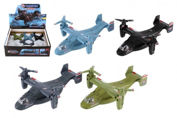 Vrtulník nákladní kov/plast 14x17cm na zpětné natažení na bat. se zvukem,světlem 4 barvy 12ks v boxu