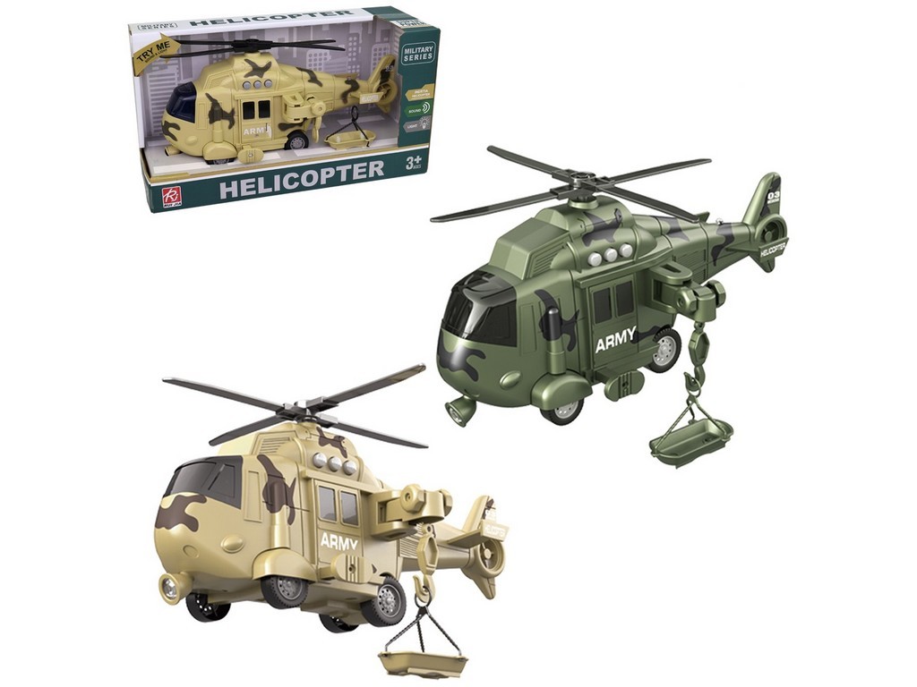 Vrtulník vojenský, se světlem a zvukem, na baterie, 28 x 10 x13 cm