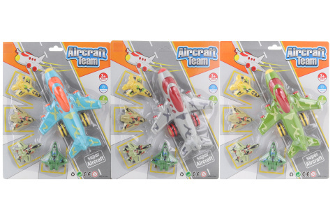 Sada plastových letadel na setrvačník. Balení obsahuje jedno velké a 4 malá letadla. Rozměry balení cca 22,5 x 28,5 x 6 cm. Věk 3+ číst celé