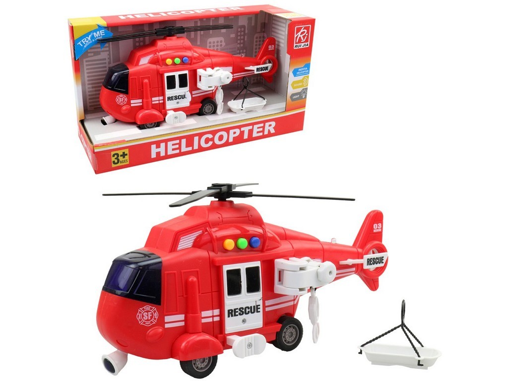 Vrtulník záchranný na setrvačník, na baterie, se světlem a zvukem, 28 x 10 x 13 cm