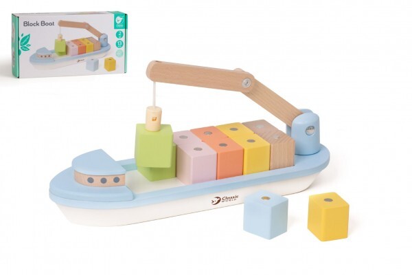 Tato dřevěná loď o délce 28 cm je vybavena 12 barevnými magnetickými bloky, které děti mohou libovolně nakládat a vykládat pomocí flexibilního jeřábu. Malí námořníci si tak mohou naplno užít hodiny tvořivé zábavy, která podporuje jejich představivost, zručnost a koordinaci pohybů.