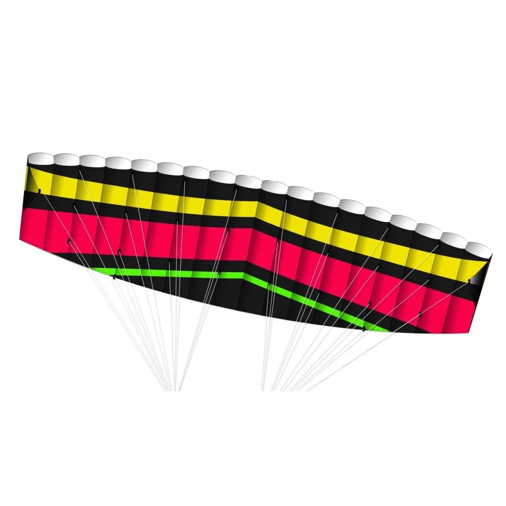 Technické specifikace:Dynamický drak pro pokročilé pilotyExtrémně pevné švyRobustní sklolaminátové tyčePlachta vyrobená z Ripstop-Polyesteru odolného proti roztrženíSe 2-mi cívkami 2x25 m a tahem 36 kgVelikost 200 x 54 cmHmotnost 180 g