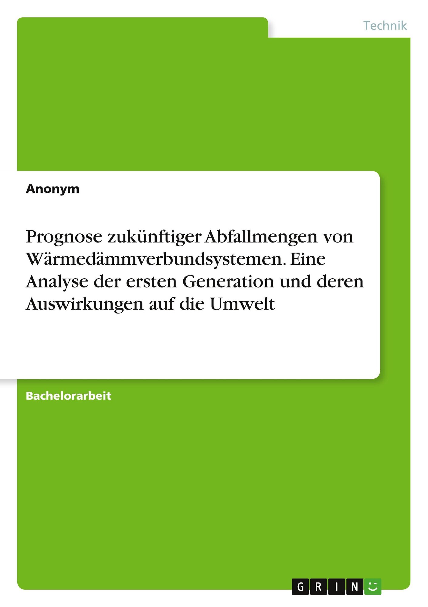 Prognose zukünftiger Abfallmengen von Wärmedämmverbundsystemen. Eine Analyse der ersten Generation und deren Auswirkungen auf di (německy)